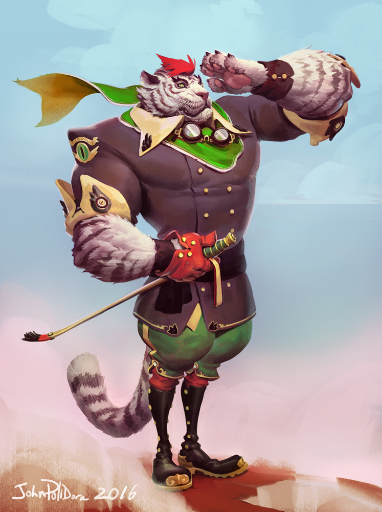 Worked on this one last night during a google hangout with a new friend, and then finished it this afternoon. Skye Captain Bengal is yet another character in my Miscreant's and Thieves comic. OBVIOUSLY he's a Skye Pirate. xDDDD